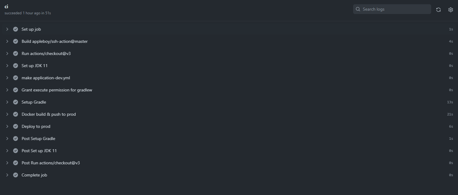 run: chmod +x gradlew # gradlew를 실행할 수 있는 권한을 추가