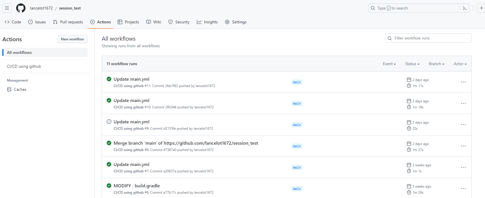 이는 매우 비효율적이기 때문에 바뀌지 않는 라이브러리들은 GitHub에서 제공하는 Cache에 보관하고 재사용하는 것이 CI 성능에 좋습니다.
