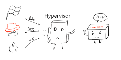 하이퍼바이저는 각 OS마다 말하는 명령을 하드웨어가 이해할 수 있게 하나의 명령어로 번역해 주는 인터페이스 역할을 합니다.